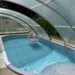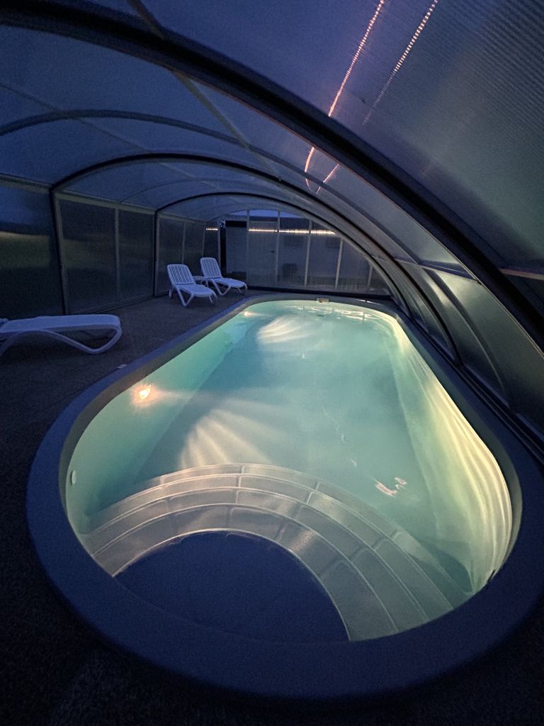 Der Pool befindet sich im Garten des Hauses und kann dank der vorhandenen Wärmepumpe bis in den Herbst hinein genutzt werden. Das Dach des Pools lässt sich vollständig öffnen, sodass man an warmen Tagen die Sonne genießen kann.