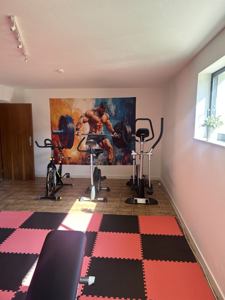 In Eurem Urlaub in unserem Haus müsst ihr nicht auf Kraft- und Ausdauertraining verzichten, sondern könnt euch in unserem Fitnessstudio austoben.